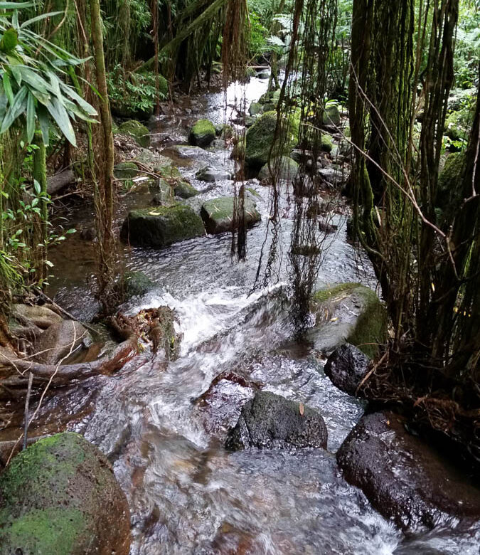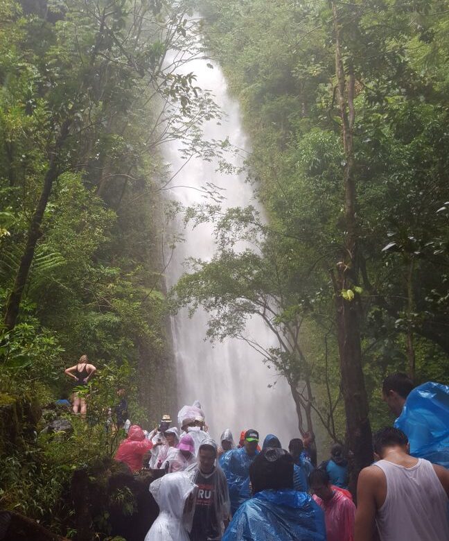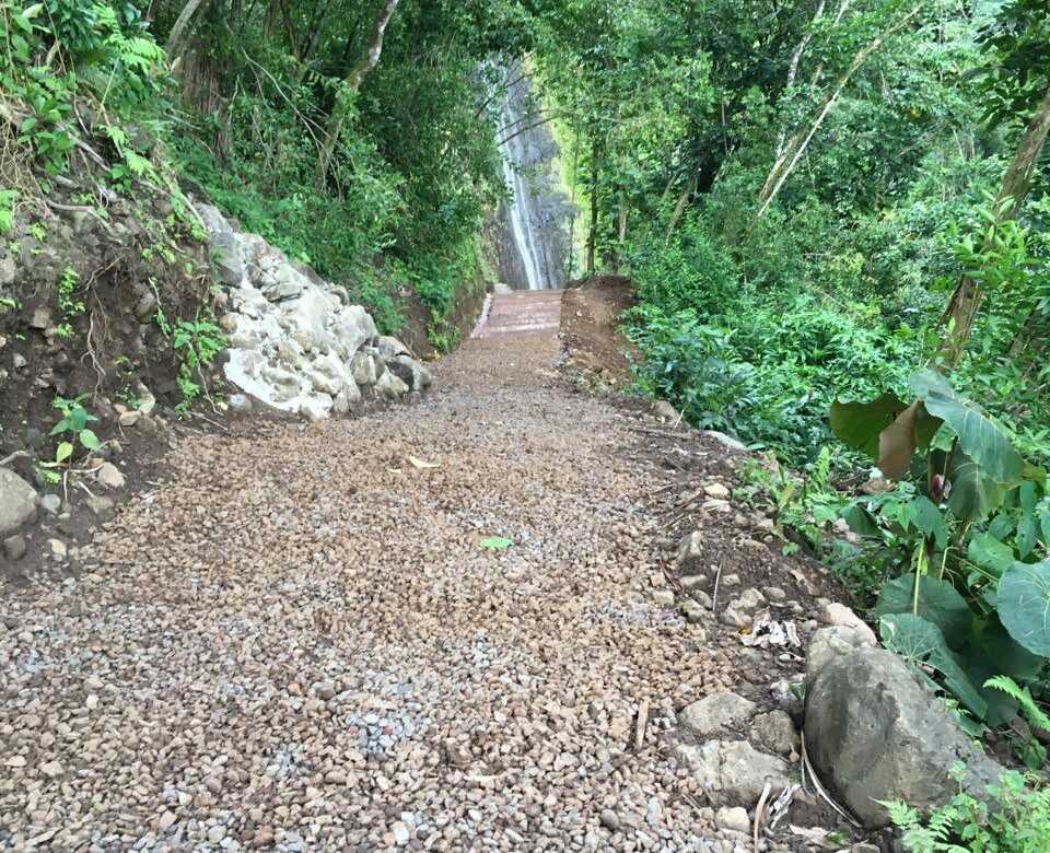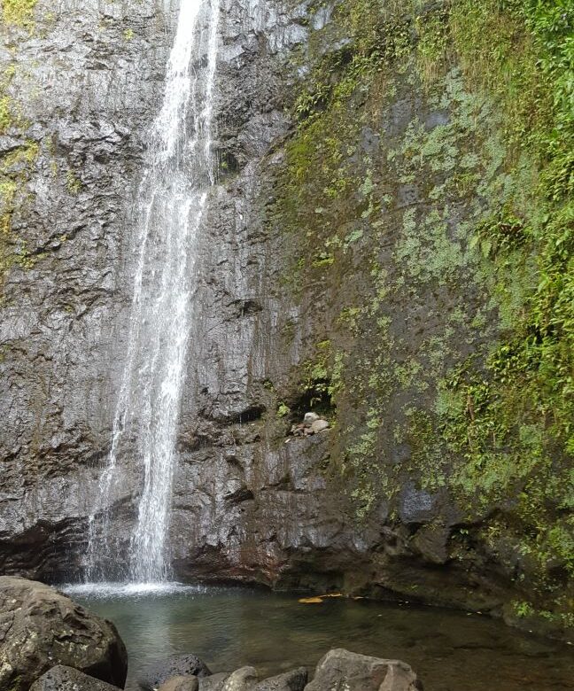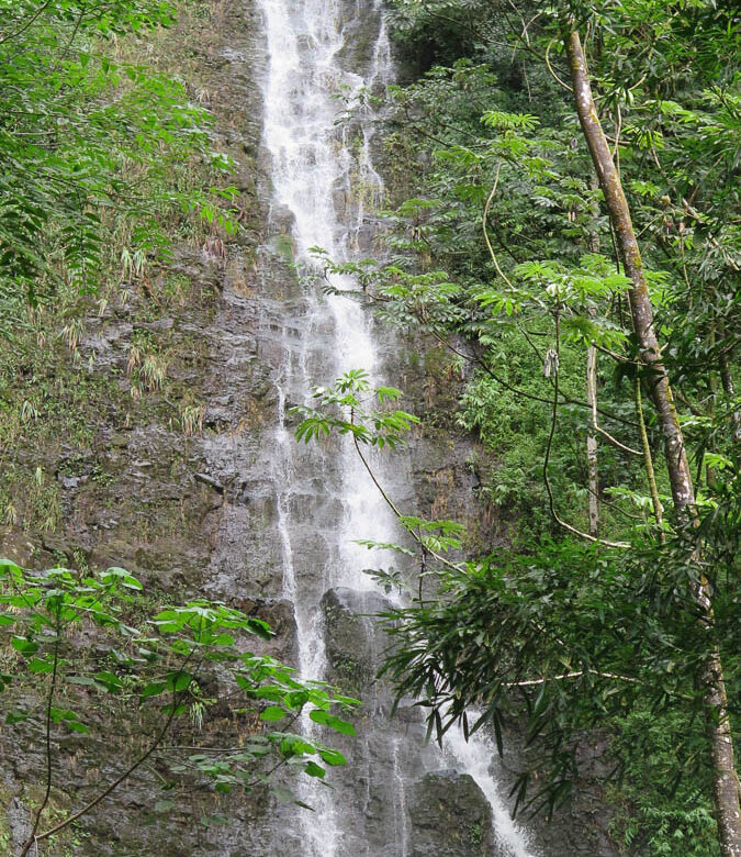 This is a mild to moderate hike over dirt trail and with rocks and roots. Trail was recently improved with a gravel path giving it a groomed appearance and is ready to hike. In the rainforest, expect rain and forest. Hawaiian waterfalls will vary in water output depending on several factors, including recent rainfall. Hiking time is approximately 1.5 hours. Trail parts can be muddy and slippery when wet.